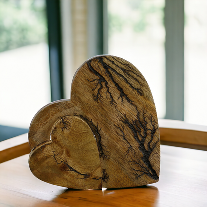 Verschönern Sie Ihr Zuhause mit diesem rustikalen Holzherz in Wurzeloptik. Seine individuelle Maserung und das Herz-in-Herz-Design symbolisieren Liebe und Verbundenheit. Mit einer Höhe von 17 cm eignet es sich perfekt als Stelldekoration und verleiht jedem Raum eine warme und gemütliche Atmosphäre. In zwei Größen erhältlich.
